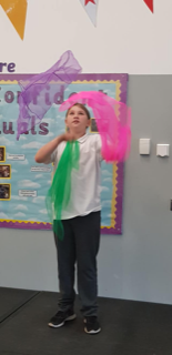 Pupils thoroughly enjoyed their circus skills days with No Fit State Circus, and with Splat Entertainment. They developed skills in clowning, juggling, stilt walking and hula-hooping which they then integrated in "The Greatest Circus Show in Wales".